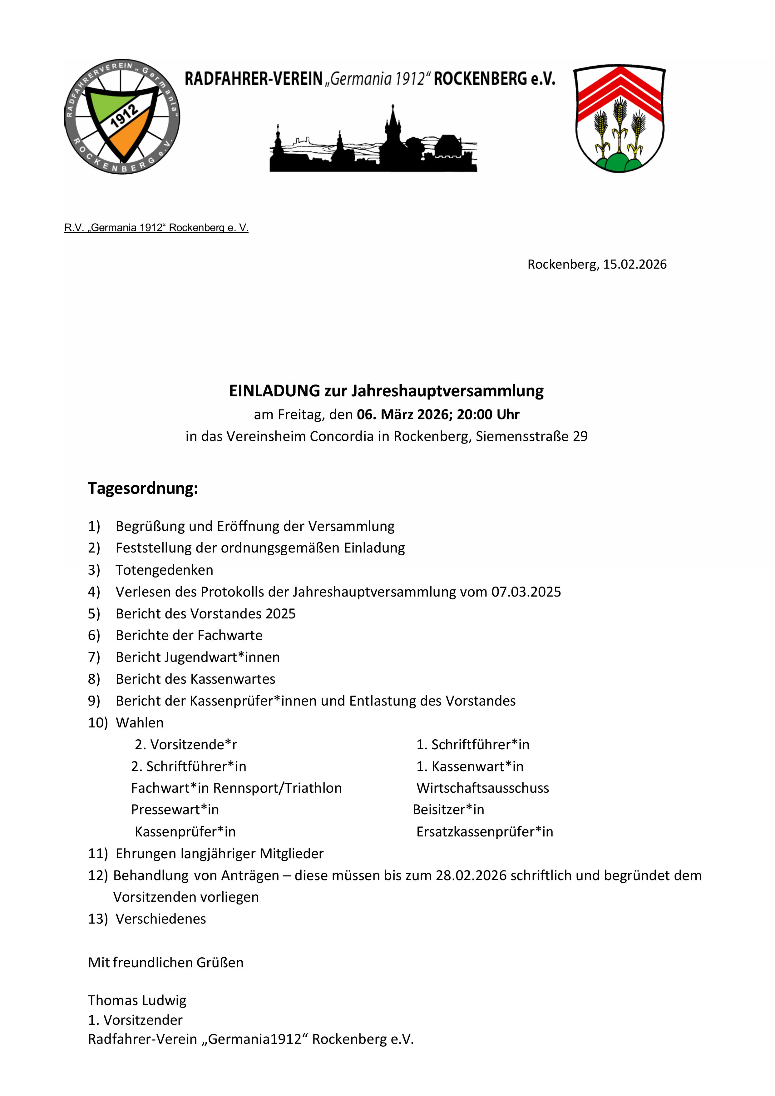 Rockenberg (bu). Der Morgennebel war aus dem Wettertal am Sonntagmorgen noch nicht ganz verschwunden, da drehte sich für die Helfer und Sportler des RV Germania Rockenberg alles um den Radsport. Bereits am Vortag hatten Helfer RTF-Strecken zwischen 48 und 156 km und CTF-Strecken zwischen 42 und 79 km ausgeschildert, auf denen zwischen 7.00 und 10.00 Uhr gestartet werden konnte. In der Wettertalhalle wurden für die Wertungskarteninhaber zuvor die Startformalitäten dokumentiert. Zwischen 8.00 und 11.00 Uhr starteten die Volksradfahrer auf ihre 17 km lange Tour. Erfreulich aus Sicht einiger Teilnehmer war, dass der Verein die Touren nicht nur als digitale Dateien bereitgestellt hatte, sondern auch „wie früher“ analog ausgeschildert hatte. Nicht nur ältere Teilnehmer kommen mit der Streckenführung über Navigationssysteme nicht wirklich gut zurecht. Begeistert waren die Radsportler auch von der abwechslungsreichen Kuchentheke. Insgesamt zeigte sich der Vorsitzende Thomas Ludwig mit dem Verlauf der Veranstaltung zufrieden, auch wenn die Zahl der 220 Teilnehmer deutlich unter der Teilnehmerzahl vor Corona lag. Mit rund 50 Helfern war die Organisation vorbildlich. Der Verein hofft, dass im nächsten Jahr wieder mehr Radsportbegeisterte in Rockenberg an den Start gehen.